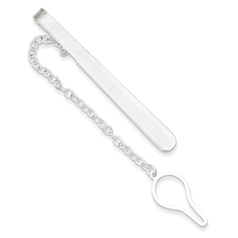 Sterling silver tie bar has a rounded end. Item size: 2 1/8in by 3/16in. Weight: 5.5 grams. Made in Italy.