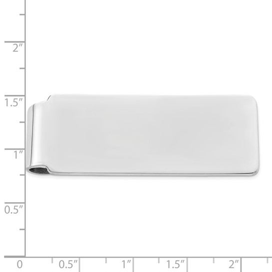 Sterling silver money clip has rounded corners. Item size: 1 7/8 inch by 11/16 inch. Weight: 13.89 grams. Made in the USA.