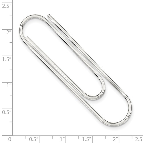 Solid sterling silver money clip is shaped like a paper clip. Measures 2 5/8 inch by 5/8 inch. Approximate weight: 7.6 grams. Made in Italy. Ships from USA.