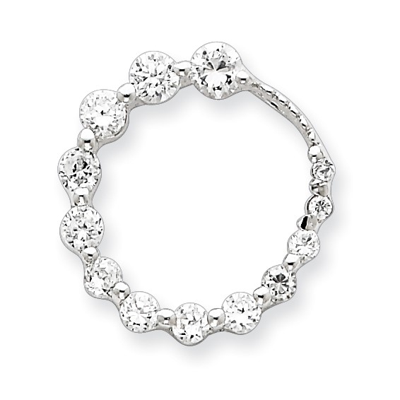 Cubic zirconia circle journey pendant is made of sterling silver. Hidden bail. Weight: 1.72 grams. Item height: 3/4in.