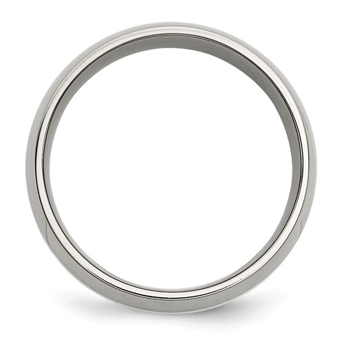 Titanium wedding band has a polished finish and sterling silver inlay. Width: 8mm. Comfort fit. made of commercially pure [CP] titanium. Import.