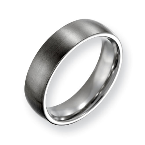 Titanium ring has a brushed finish and domed center. Width: 6mm. Made of aircraft grade titanium in China. Comfort fit. Aircraft grade titanium [Ti 6Al-4V] is comprised of 90% titanium, 6% aluminum, 4% vanadium. It is hypoallergenic and guaranteed not to cause allergic reactions, skin irritations or discoloration of any sort. While pure grades of titanium [99.9%] used in most other titanium jewelry is very durable, Ti 6Al-4V is 2x stronger and 2.5x to 5x harder. This alloy has a tensile strength of up to 150,000 psi and a Brinell hardness value of 330.