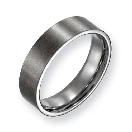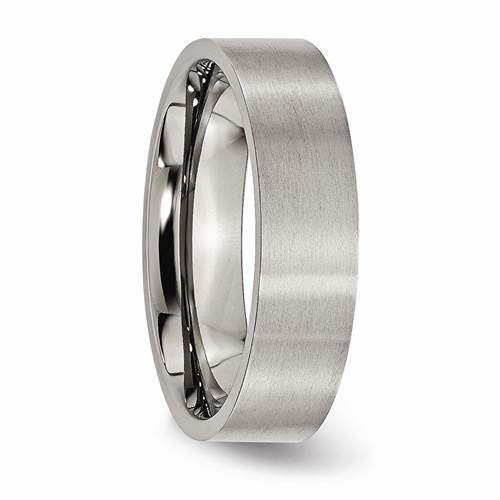 Flat titanium wedding band has a brushed finish. Width: 6mm. Made of aircraft grade titanium in China. Comfort fit. Aircraft grade titanium [Ti 6Al-4V] is comprised of 90% titanium, 6% aluminum, 4% vanadium. It is hypoallergenic and guaranteed not to cause allergic reactions, skin irritations or discoloration of any sort. While pure grades of titanium [99.9%] used in most other titanium jewelry is very durable, Ti 6Al-4V is 2x stronger and 2.5x to 5x harder. This alloy has a tensile strength of up to 150,000 psi and a Brinell hardness value of 330.