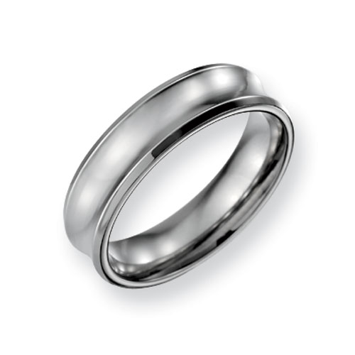 Polished titanium band features concave center. Width: 6mm. Made of aircraft grade titanium in China. Comfort fit. Aircraft grade titanium [Ti 6Al-4V] is comprised of 90% titanium, 6% aluminum, 4% vanadium. It is hypoallergenic and guaranteed not to cause allergic reactions, skin irritations or discoloration of any sort. While pure grades of titanium [99.9%] used in most other titanium jewelry is very durable, Ti 6Al-4V is 2x stronger and 2.5x to 5x harder. This alloy has a tensile strength of up to 150,000 psi and a Brinell hardness value of 330.