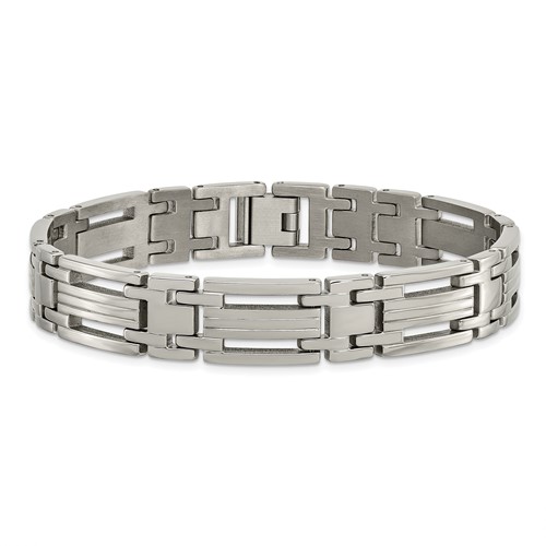 Titanium men's polished bracelet has a fold-over clasp. Made of commercially pure [CP] titanium. Length: 8.75in. Imported.