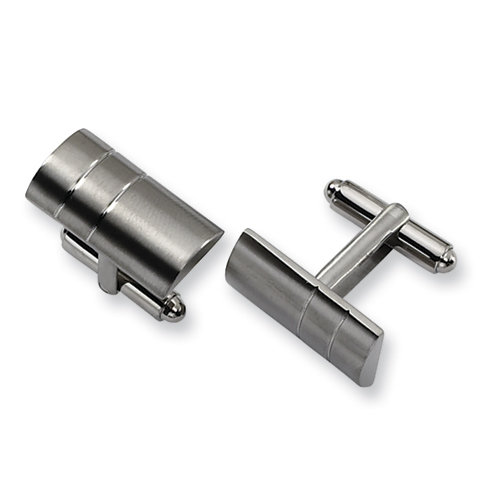 Titanium cuff links. Brushed finish with two polished grooves. Imported.