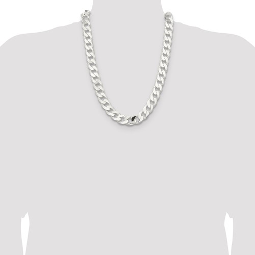 Sterling silver 8 inch curb link bracelet has a lobster clasp. 15mm wide links. Weight: 61.25 grams.