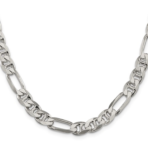 Sterling silver 8 inch Figaro anchor link bracelet has a lobster clasp. 7.75mm wide. Weight: 19 grams. Made in Italy.