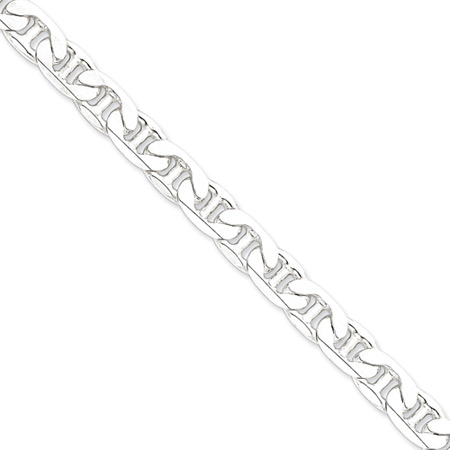 9.5mm wide anchor chain is made of polished, solid sterling silver. Length: 18in. Weight: 68.2 grams. Lobster clasp. Made in Italy.