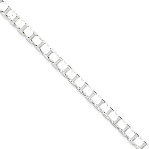 Sterling silver 20in box chain has a lobster clasp. Width: 4.5mm. Weight: 56.7 grams. Made in Italy.