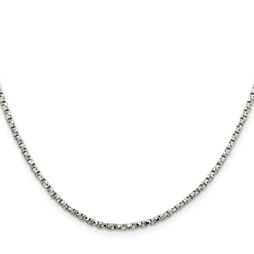 Solid sterling silver 18 inch twisted box chain has a lobster clasp. 2.25mm wide. Approximate weight: 10.35 grams.