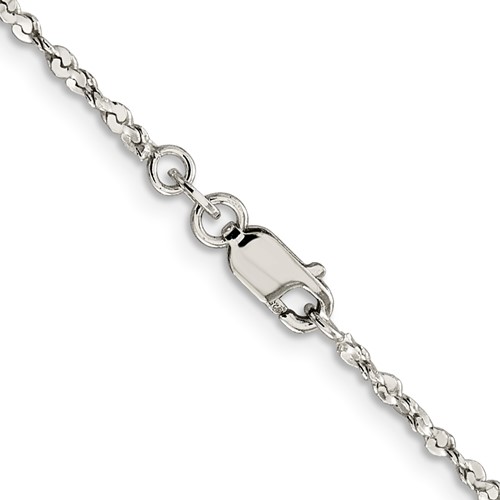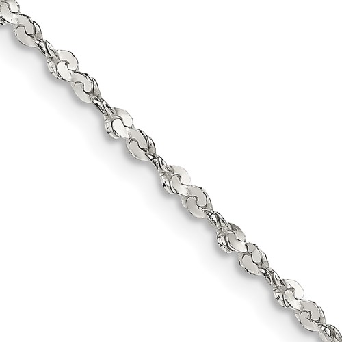 Solid sterling silver 20 inch twisted serpentine chain has a lobster clasp. Diamond-cut. Width: 1.8mm. Weight: 5.5 grams. Made in India. Ships from USA.