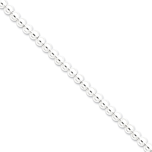 Hollow, polished sterling silver beaded box chain necklace has a lobster clasp. Length: 16in, width: 6mm. Weight: 26.37 grams. Made in Italy.