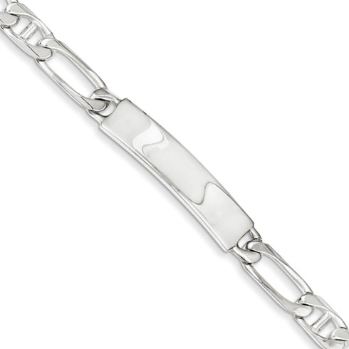 8 inch Sterling Silver Polished Engravable Anchor Link ID Bracelet. Weight:19.61 grams. Lobster clasp.