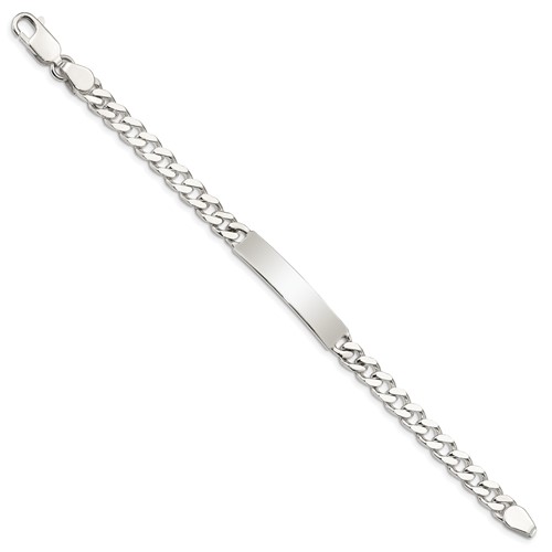 Sterling silver 7in ID bracelet has curb links. Link width: 1/4in. Engravable plate size: 1 1/4in x 1/4in. Weight: 15.63 grams. Lobster clasp. Import.
