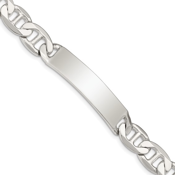 Anchor link ID bracelet is made of polished sterling silver. Length: 8 1/2in. Plate size: 1 1/2in x 3/8in. Link width: 10mm. Weight: 30.7 grams. Lobster clasp. Import.