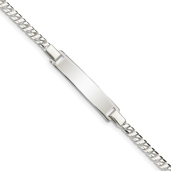 Sterling silver 6 inch baby ID bracelet has fancy links and a lobster clasp. Chain width: 6mm. Weight: 4.7 grams. Import.