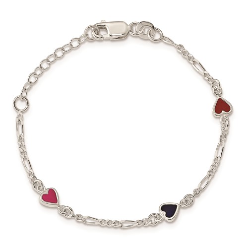 Dainty red and black enamel hearts decorate this sterling silver bracelet. Length: 6in. Weight: 2 grams. Lobster clasp. Import.