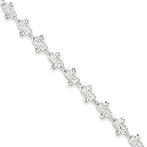 Sterling silver fancy polished anklet. Length: 10in. Weight: 3.2 grams. Springlock clasp.