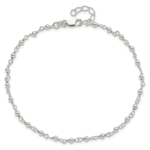 Sterling silver 10in anklet has round beads and a lobster clasp. Weight: 4.19 grams. Import.