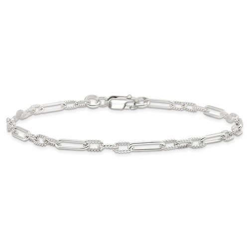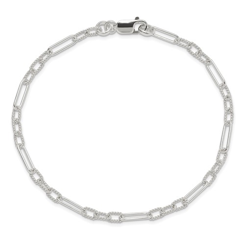 Sterling silver 10in anklet has textured and smooth links with a lobster clasp. Weight: 6.3 grams. Import.