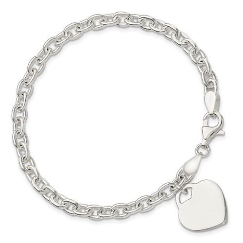 This solid sterling silver heart charm Bracelet has a fancy lobster clasp. Bracelet length: 8.5in. Weight: 13.5 grams. Made in India. Ships from USA.
