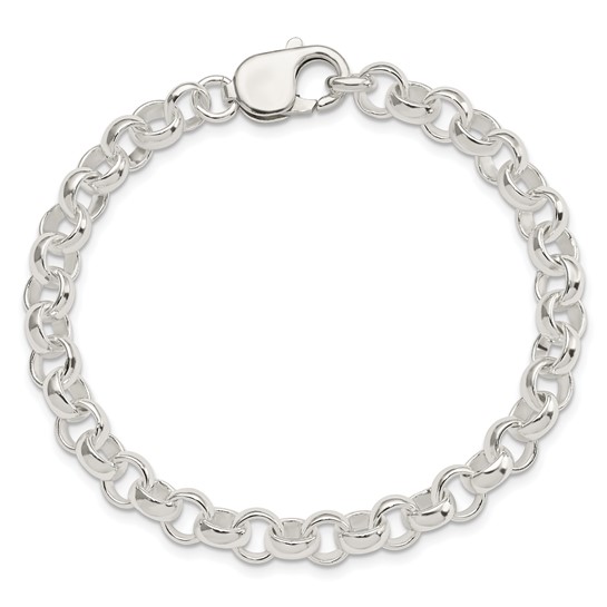 Sterling silver rolo link bracelet has a lobster clasp. Bracelet length: 7.5 inches, width: 7mm. Weight: 18.37 grams. Import.