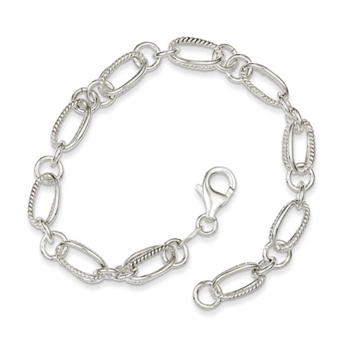 Made in Italy, this polished sterling silver bracelet is 7.5in in length and weighs 11.5 grams. Fancy lobster clasp.