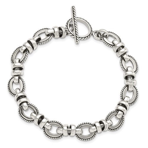 This ladies' antiqued sterling silver oval link bracelet has a toggle clasp. Bracelet length: 7.5 inches. Weight: 21.87 grams. Toggle clasp. Import.
