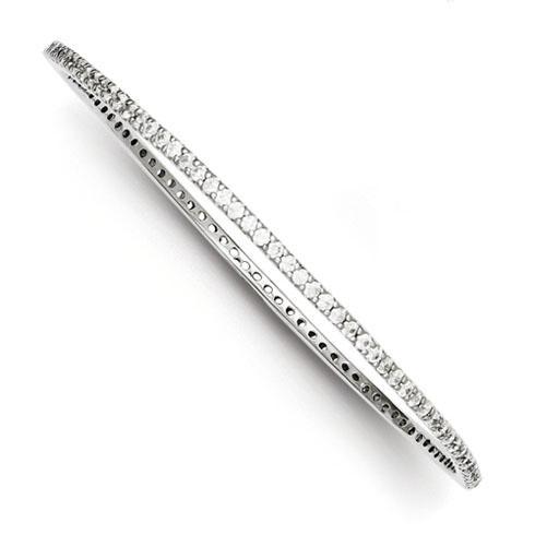 Sterling silver slip on bangle bracelet has round cubic zirconia accents all the way around. One size fits most. Weight: 11.0 grams. Import.