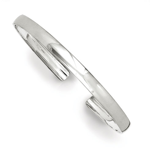 Smooth cuff bangle bracelet is made of polished sterling silver. Width: 5.25mm. One size fits most. Flexible. Weight: 10 grams. Made in Italy.