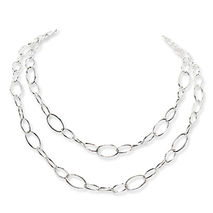 42in multi-layered fancy oval Link necklace is made of sterling silver. Weight: 37.9 grams. Lobster clasp.