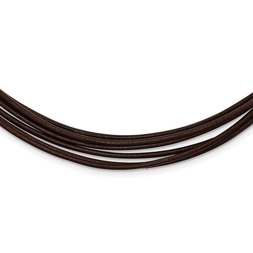 16 inch brown multi-cord leather necklace has a sterling silver spring ring clasp. Weight: 5.8 grams. Made in Italy.