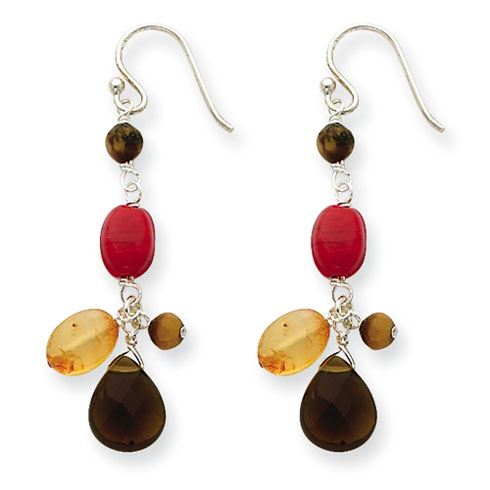 Sterling Silver Carnelian/Tiger Eye/Smoky Quartz Earrings. Weight:1.25 grams. Measures 2 inches tall.