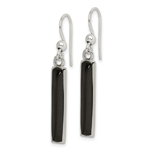 Sterling silver onyx bar earrings have French wire backs. Measures 1 1/2 inches tall. Approximate weight: 3.2 grams.