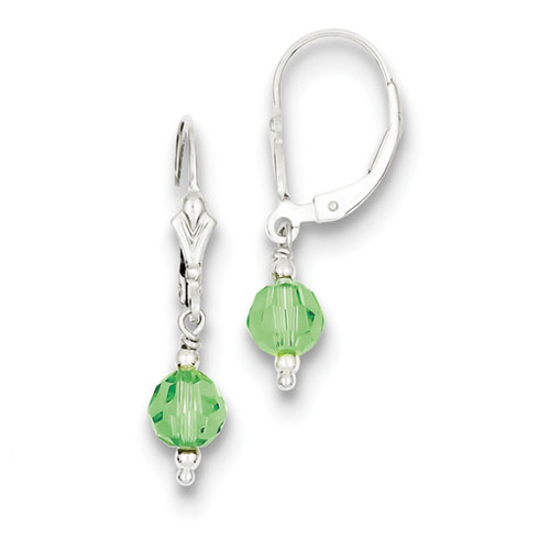 Sterling Silver Green Crystal Leverback Earrings. Weight:0.93 grams. Measures 1 1/4 inches tall.