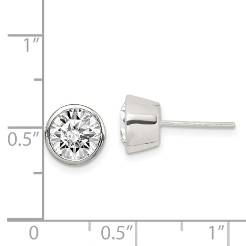 7mm cubic zirconia round bezel stud earrings are made of sterling silver. Friction backs. Weight: 2.4 grams.