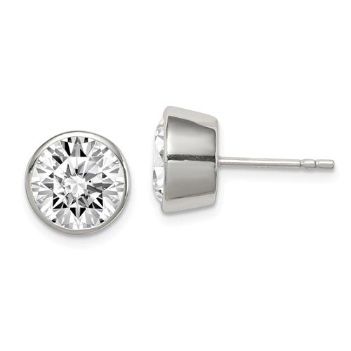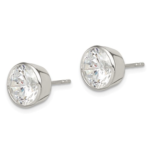 Sterling silver 9mm cubic zirconia bezel stud earrings have a polished finish. Weight: 3.25 grams.