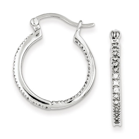 Sterling silver cubic zirconia Hoop earrings have a wire and clutch closure. Cubic zirconias are set on the inside and outside. Measures 1 inch tall.