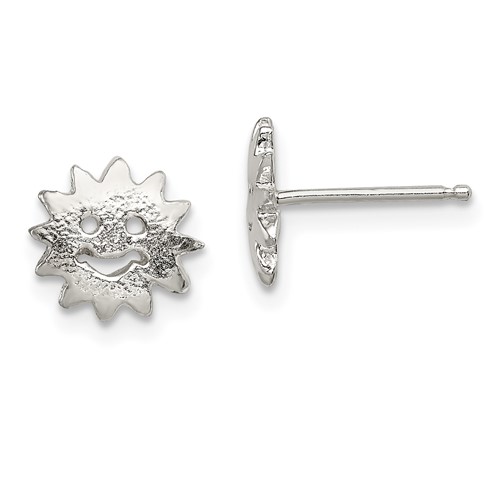 Smiling sun mini earrings are made of sterling silver. Measures 8mm x 8mm. Weight: 0.87 grams.