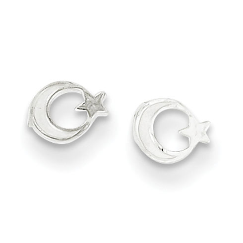 Star and moon mini earrings are made of sterling silver. Measures 3/16 inches tall. Weight: 0.3 grams.