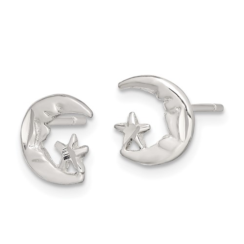 Moon and star mini earrings are made of solid sterling silver. Measures 5/16 inches tall. Approximate weight: 0.68 grams.