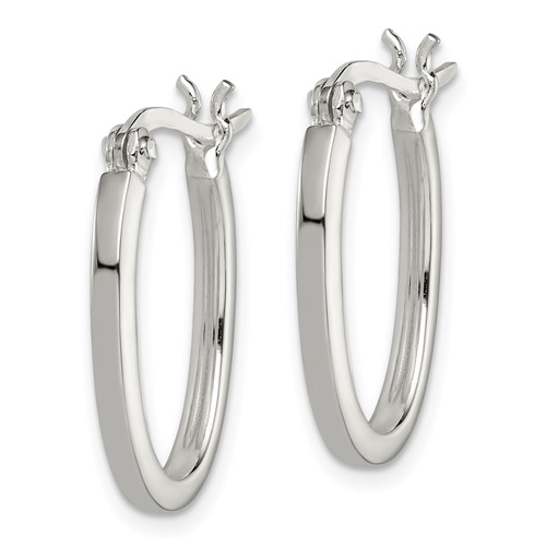 Hollow oval hinged hoop earrings are made of polished sterling silver. Size: 7/8in x 5/8in. Thickness: 2mm. These earrings are the size of nickel. Weight: 0.87 grams. Import.