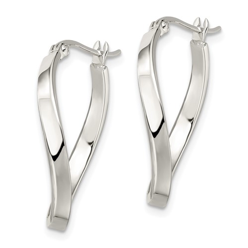 Twisted hoop earrings are made of polished sterling silver. Weight: 5.9 grams. Measures 1 1/4 inch tall. Import.