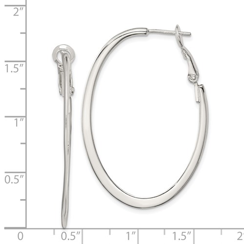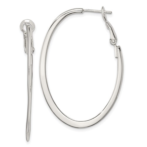 Sterling silver oval hoop earrings have omega backs. Item size: 1 1/2 inch tall. Hollow. Weight: 3.2 grams. Made in China. Ships from USA.