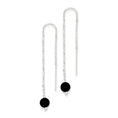 Sterling Silver Onyx Threader Earrings. Weight: 0.72 grams. Measures 2 1/8 inches tall.