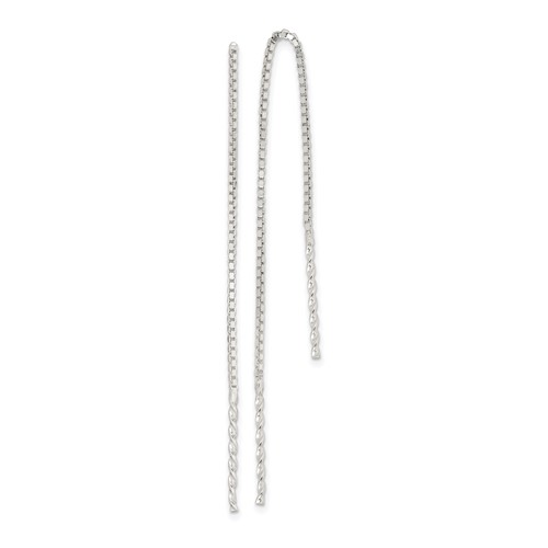 These hand made spiral bar threader earrings are made of polished sterling silver. Measures 3 1/8 inch in length. Weight: 2.75 grams. Made in Italy.