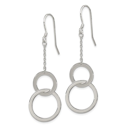 Sterling silver circle dangle earrings have shepherd hooks. Measures 2 3/16 inches tall. Weight: 2.4 grams. Import.