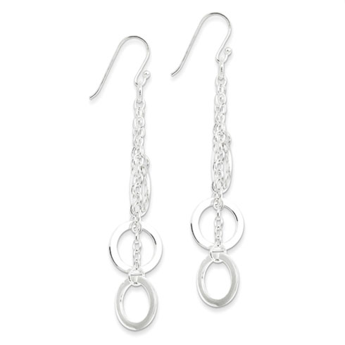 Rope and circle charm dangle earrings are made of polished sterling silver. Measures 3 3/16 inches tall. Shepherd hook. Weight: 4.09 grams.