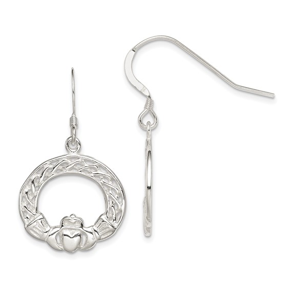 Celtic knot claddagh dangle earrings are made of sterling silver. Shepherd hook. Measures 1 3/8 inches tall. Weight: 3.5 grams. Import.